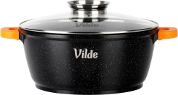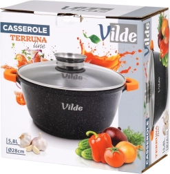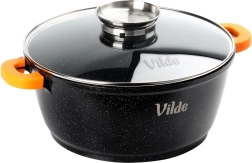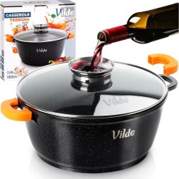 Découvrez le faitout polyvalent VILDE de la ligne TERRUNA AROMA, idéal pour la cuisine au quotidien. Grâce au corps en aluminium massif coulé avec revêtement granit antiadhésif, vous préparez soupes, goulaschs, plats mijotés et gratins en douceur et de manière uniforme. Le couvercle en verre avec grande poignée et doseur pratique permet d’ajouter de l’eau, du vin ou d’autres assaisonnements liquides sans soulever le couvercle.