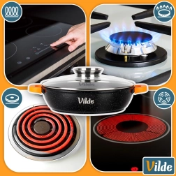 Un fond épais multicouche répartit la chaleur uniformément et convient au gaz, à l’électricité, au vitrocéramique et à l’induction.