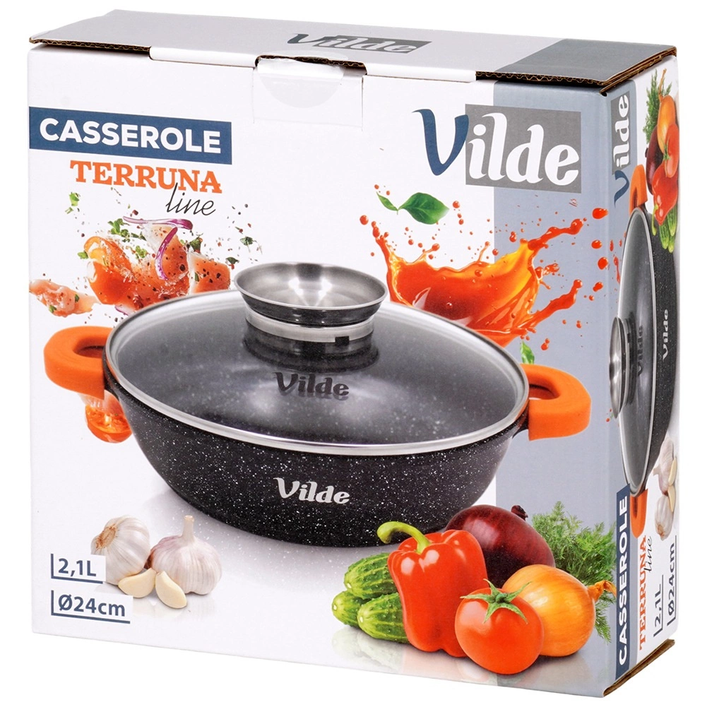 Poêle profonde en granit avec couvercle en verre TERRUNA AROMA 24 cm, 2,1 l