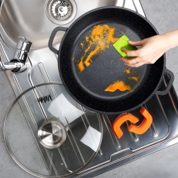 Le revêtement granit résistant permet de cuisiner avec peu de graisse et se nettoie aisément – compatible lave-vaisselle.