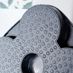 La surface lisse se rince en un instant et l’orifice dans la poignée permet une suspension pratique sur une barre ou un crochet.