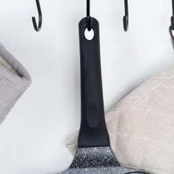 Le corps en aluminium massif assure une montée en température rapide et une distribution uniforme sur toute la surface, ce qui économise temps et énergie. La poignée ergonomique antidérapante tient bien en main et l’orifice à son extrémité permet un accrochage pratique.