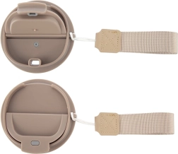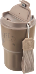Le mug tient bien en main et s’adapte aux porte-gobelets de voiture. La dragonne amovible facilite le transport en déplacement.