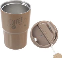 Profitez de votre café ou thé préféré à tout moment et partout. Le mug isotherme en acier inoxydable de qualité, avec double paroi et isolation sous vide, maintient efficacement la température de la boisson tout en limitant la condensation et les risques de brûlure des mains. Sa forme ergonomique tient parfaitement dans la paume et dans le porte-gobelet de la voiture.
