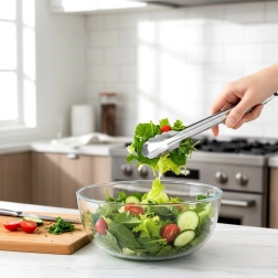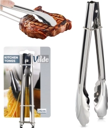 Ces pinces de cuisine universelles en acier inoxydable se distinguent par leur solidité, leur résistance et leur maniabilité confortable. Grâce aux mâchoires crantées, elles saisissent en toute sécurité la viande, les légumes et les produits de boulangerie sans abîmer la surface des aliments. Parfaites pour servir des salades, retourner des steaks à la poêle et travailler au-dessus du gril.