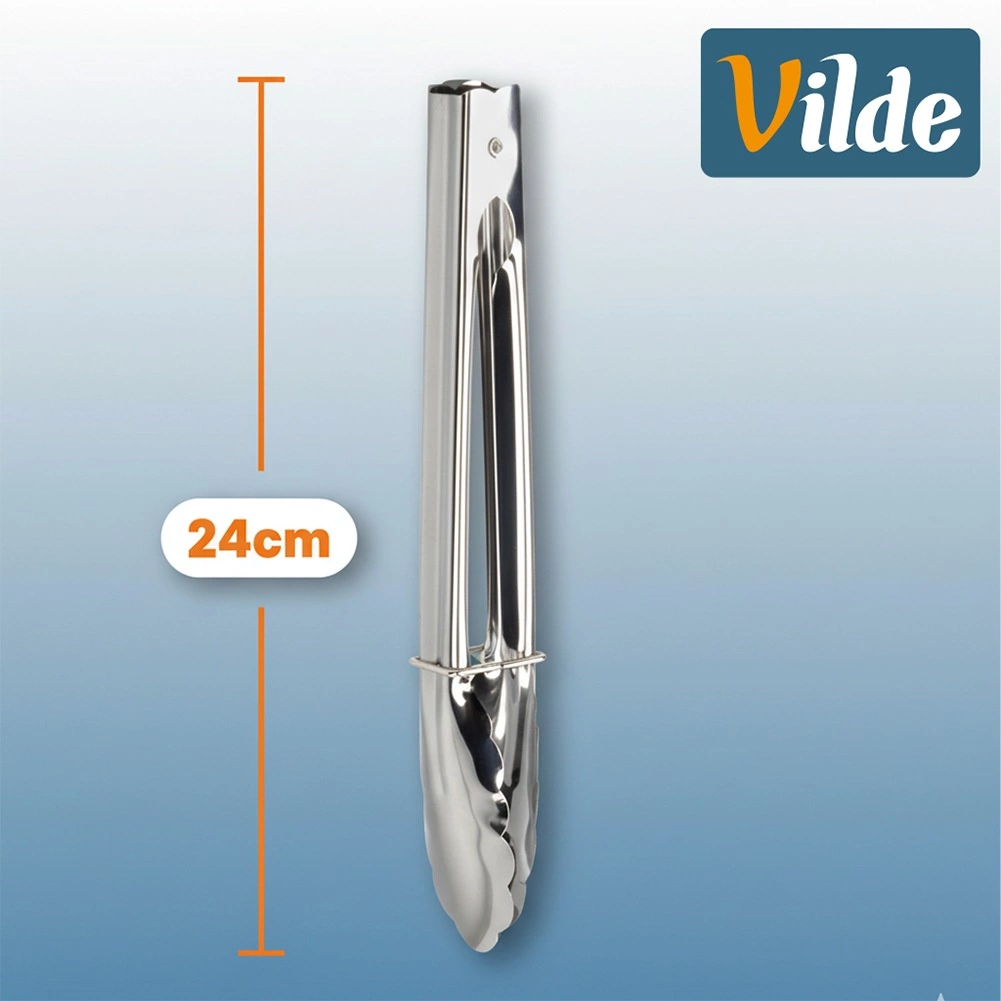 Le verrou de sécurité coulissant maintient la pince fermée et fait gagner de la place dans le tiroir ou sur la barre de cuisine. Grâce à la conception en acier inoxydable, elles résistent aux hautes températures et se nettoient facilement – il suffit de les mettre au lave-vaisselle.