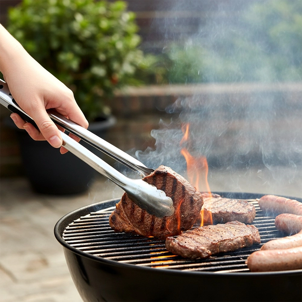 Les extrémités crantées en acier inoxydable saisissent en toute sécurité steaks, légumes et viennoiseries sans glisser – idéales pour poêles, plaques et grill.