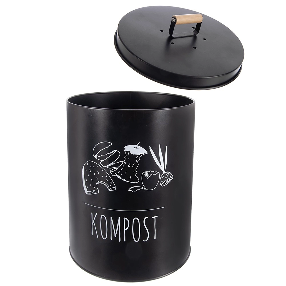 La construction métallique robuste de couleur noire assure une longue durée de vie et une bonne résistance à l’usage quotidien. Le couvercle hermétique réduit la propagation des odeurs et empêche l’accès des insectes, tandis que la poignée en bois facilite la manipulation. L’entretien est simple – il suffit d’essuyer avec un chiffon humide.