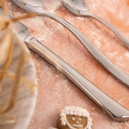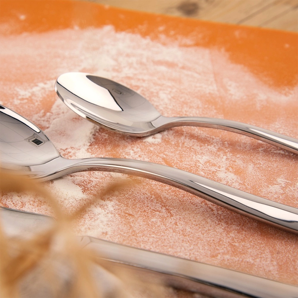 Ce set de 24 pièces en acier inoxydable offre une alliance équilibrée de fonctionnalité et d’esthétique. La conception plus massive tient bien en main et apporte un grand confort d’utilisation, tandis que la forme élégante et polyvalente s’harmonise avec une vaisselle classique ou moderne.