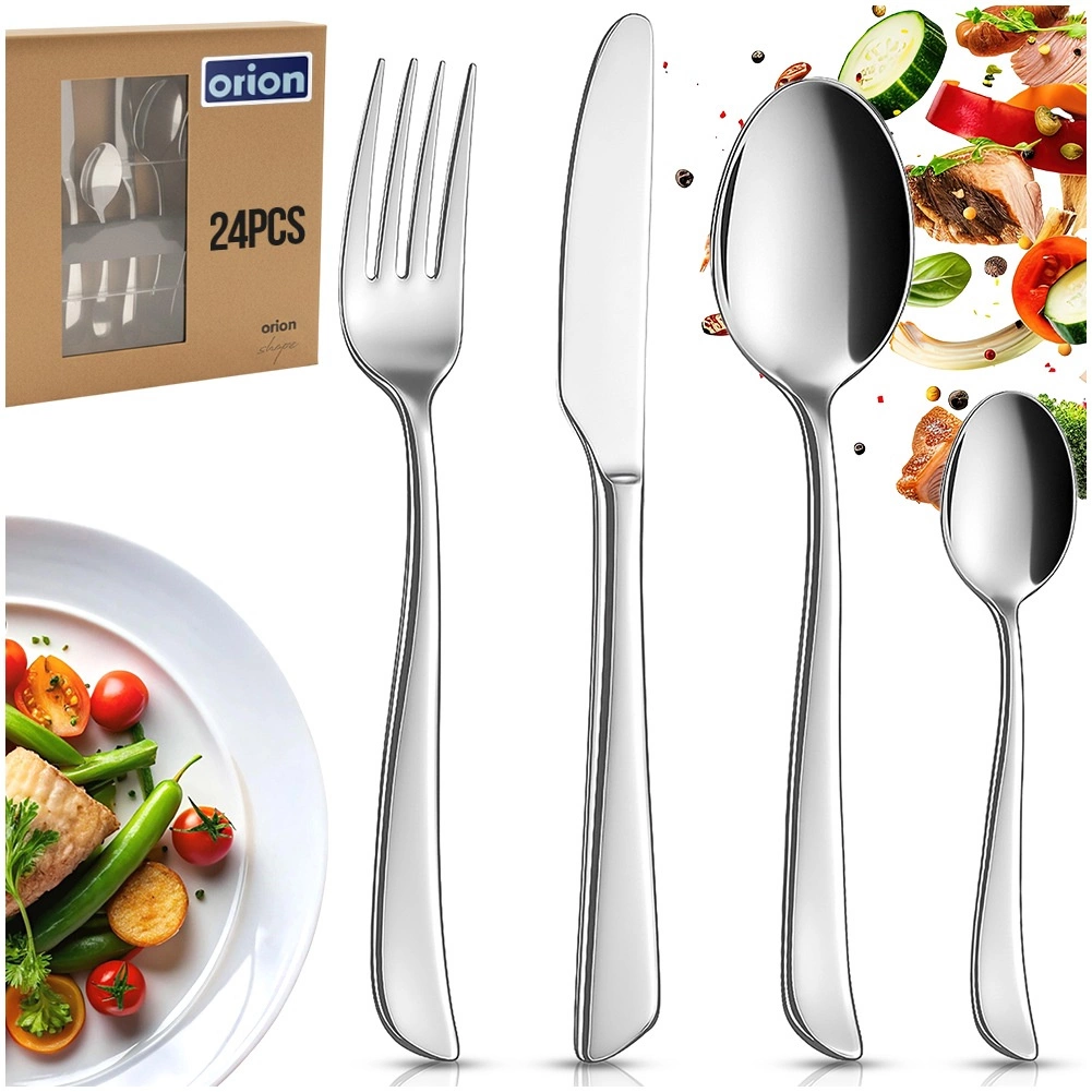 Élégant set de couverts pour 6 personnes comprenant 24 pièces en acier inoxydable de qualité avec une finition brillante. Inox résistant, design intemporel et entretien facile, y compris le lavage au lave-vaisselle, en font un choix idéal pour le quotidien comme pour les occasions festives.