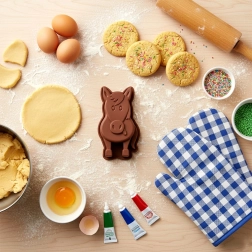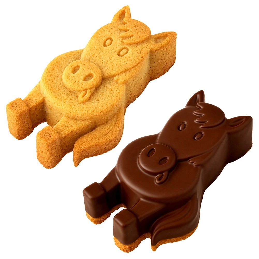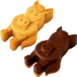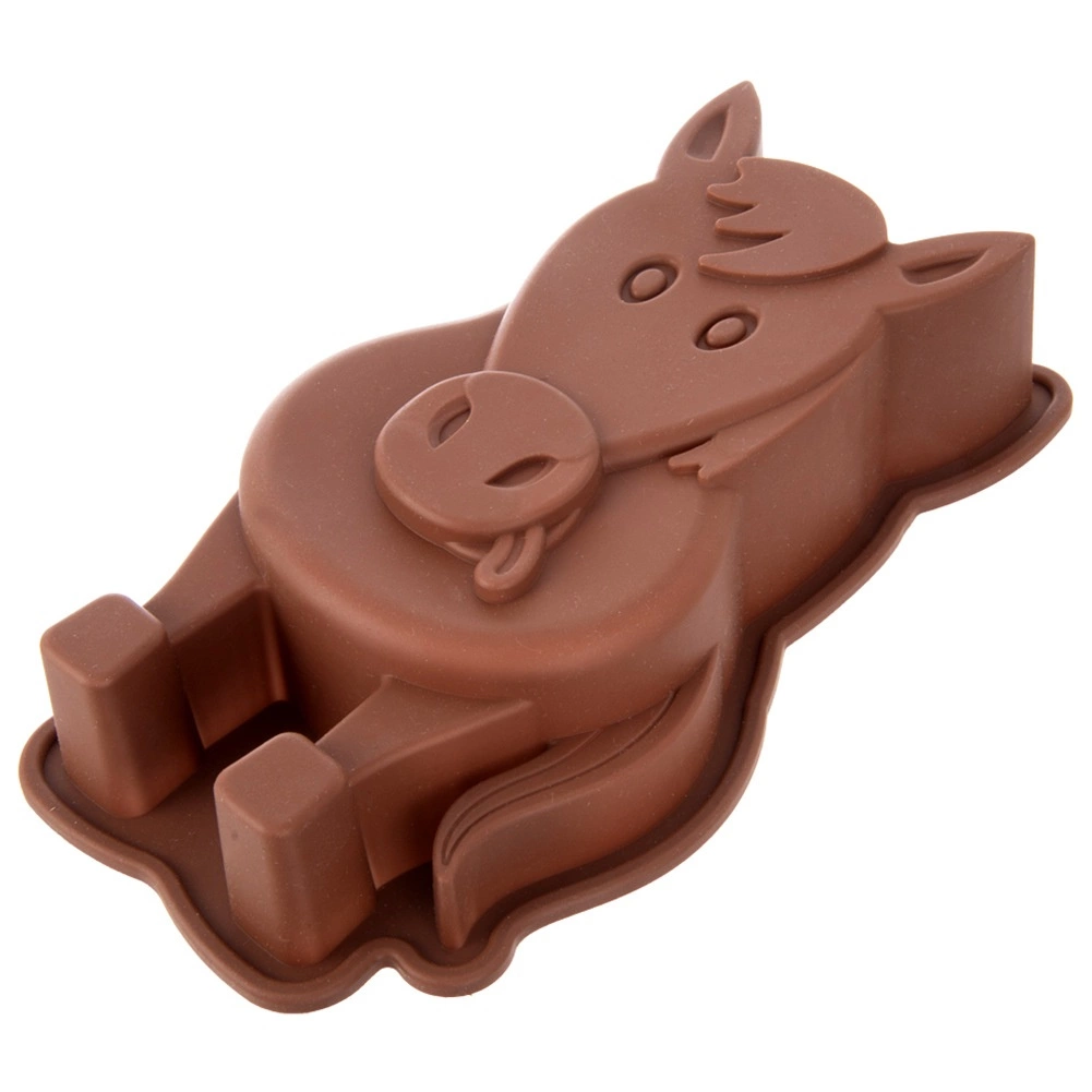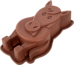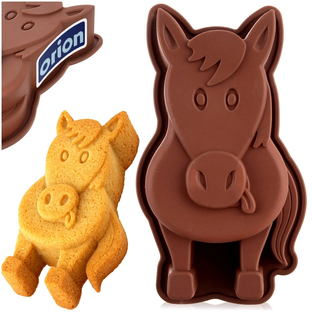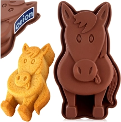Moule en silicone ludique en forme de cheval pour des pâtisseries et desserts froids faciles. Grâce au silicone antiadhésif et souple, la pâte se démoule facilement, le moule répartit la chaleur uniformément et est résistant de -40 °C à +220 °C. Idéal pour les pâtes à kouglof, génoises, gâteaux battus et levés, mais aussi pour les gelées et les créations créatives avec les enfants.