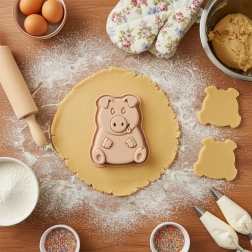 Adorable moule en silicone en forme de petit cochon pour réaliser facilement des desserts cuits ou sans cuisson. Grâce au silicone antiadhésif et flexible, vous démoulez aisément chaque biscuit parfaitement cuit ou dessert gélifié. Compatible four, congélateur et micro-ondes, résistant de -40 °C à +220 °C, et lavable au lave-vaisselle.