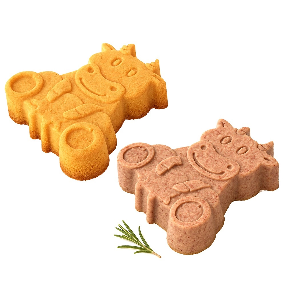 Avec ce moule en forme de vache, créez des gâteaux originaux, des cakes, des génoises, des pâtes battues, des gelées et des desserts glacés. Le relief détaillé apporte une touche ludique à vos créations – idéal pour les fêtes d’enfants, la pâtisserie créative et s’amuser avec les enfants. Le silicone assure un démoulage facile sans déchirure et une forme bien nette.
