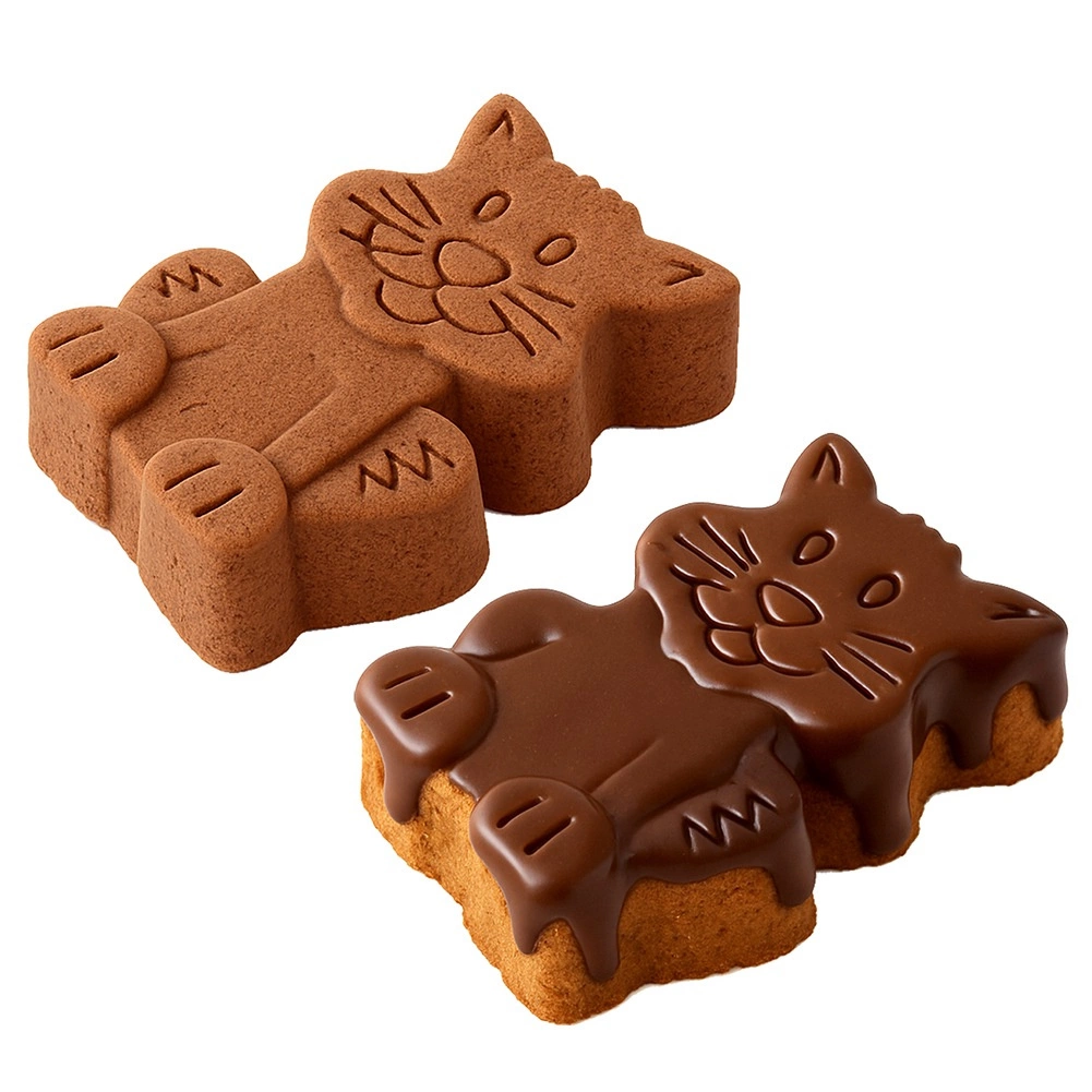 Avec ce moule en forme de chat, réalisez des gâteaux spectaculaires, génoises, pâtes battues ou levées, ainsi que des desserts froids. Le silicone de qualité, de couleur beige, est souple, antiadhésif et résistant, de sorte que la base cuite se retire facilement sans bords déchirés et avec de belles moustaches et pattes bien dessinées.