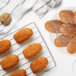 Après la cuisson, laissez les madeleines refroidir sur une grille pour une texture parfaite et une délicate croûte sans condensation.