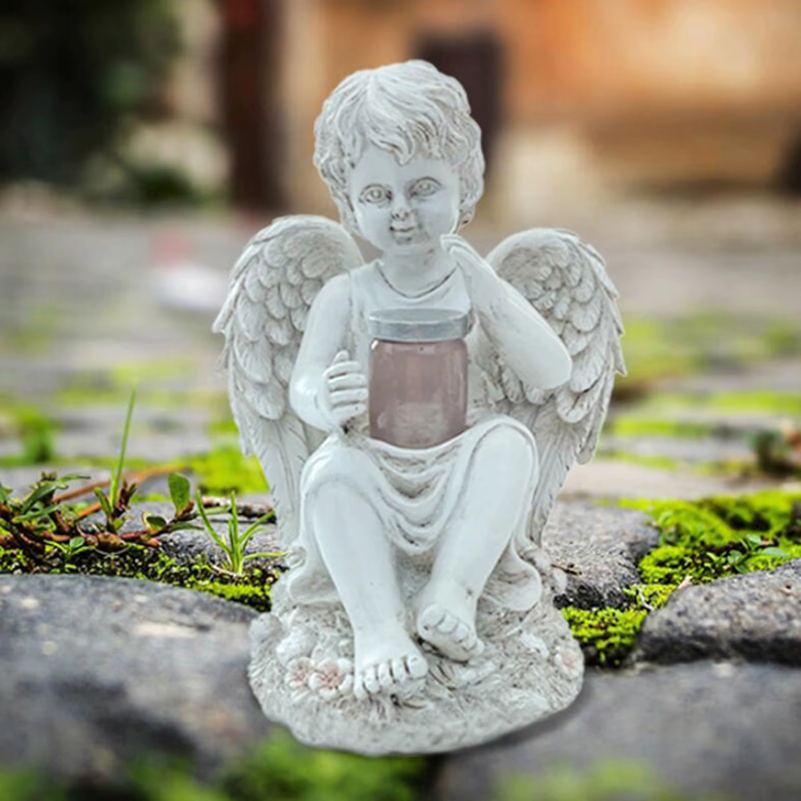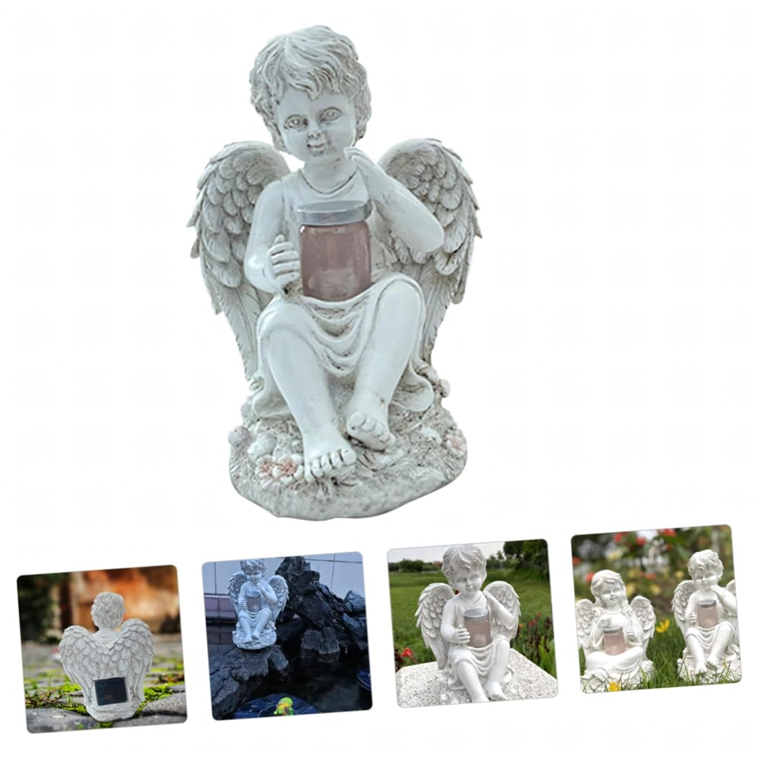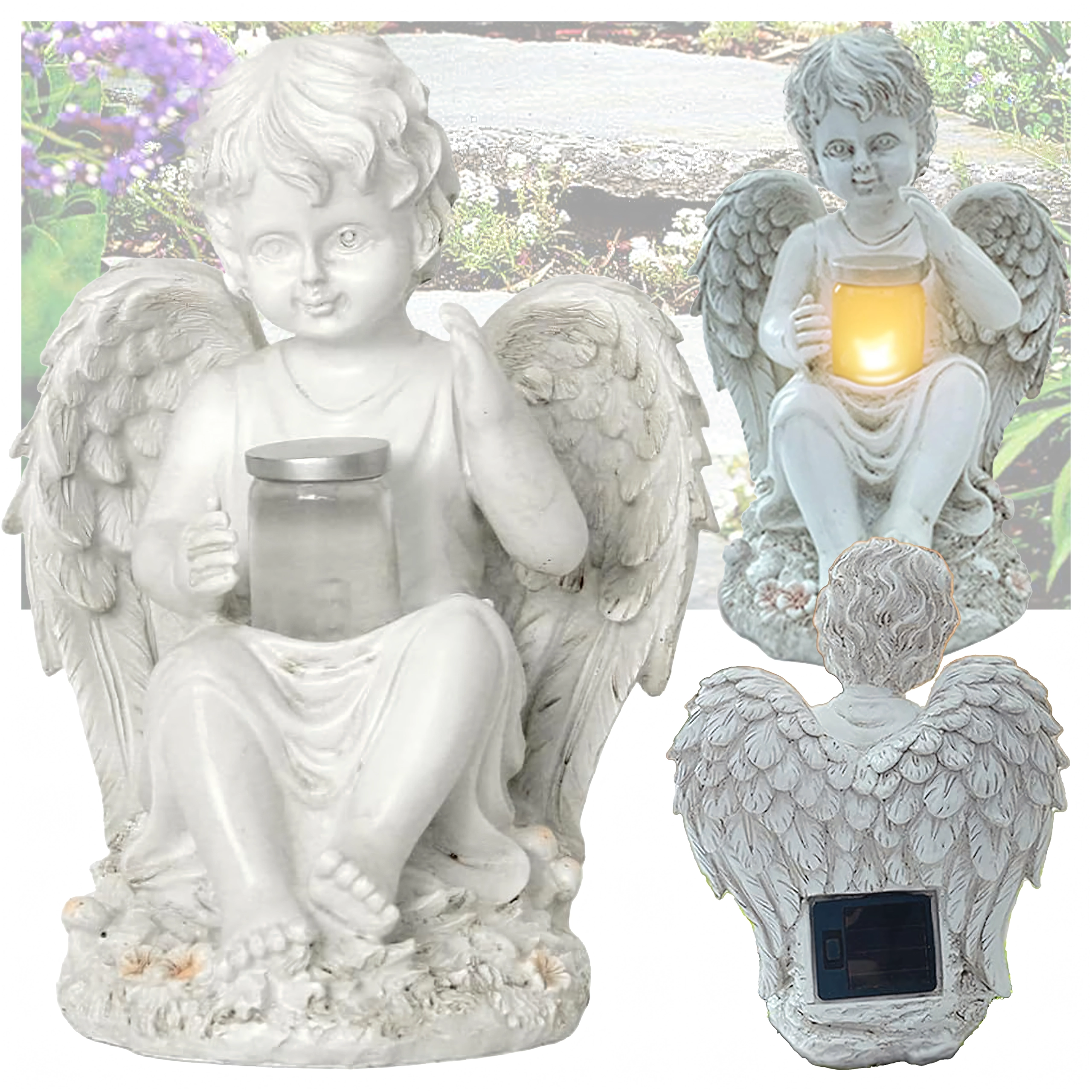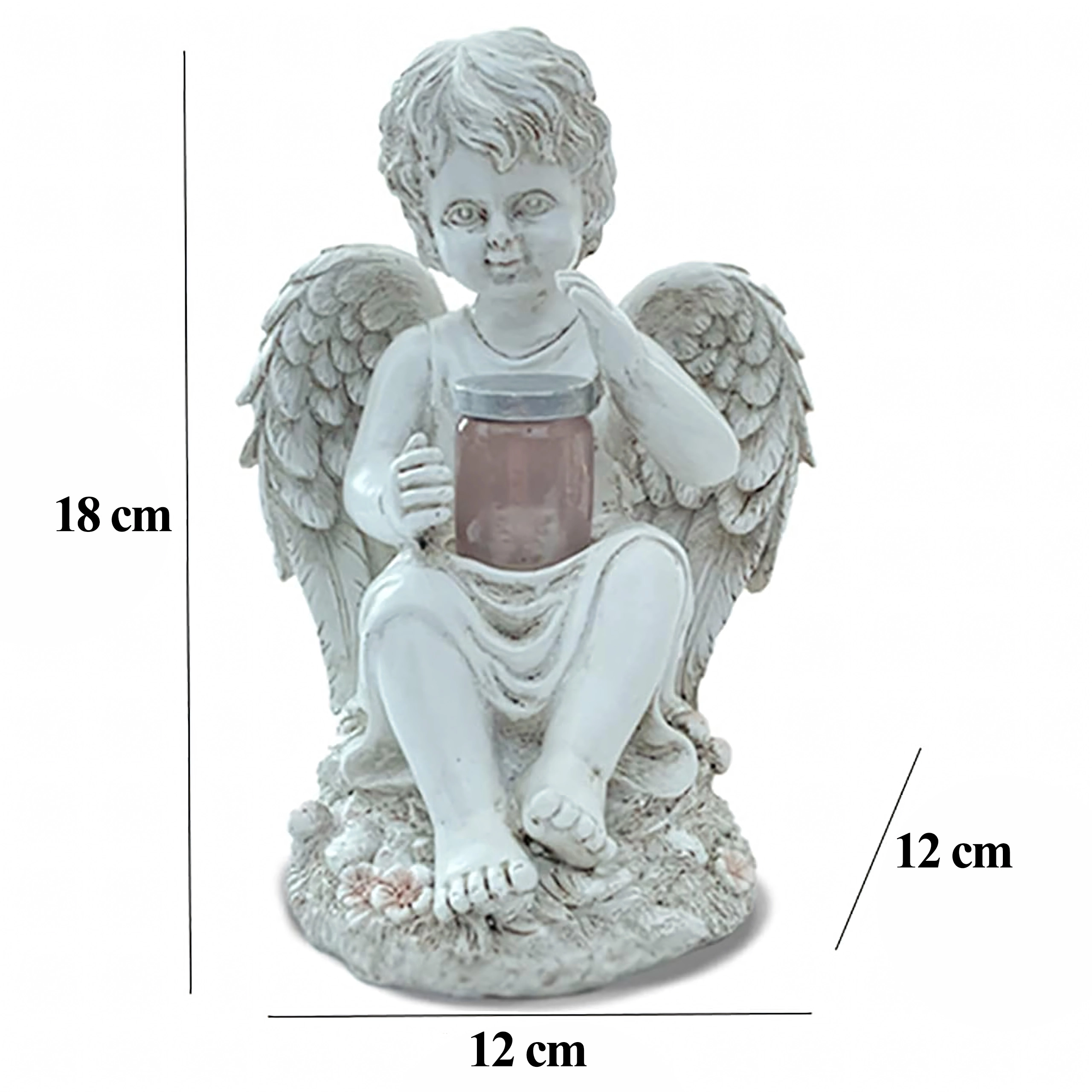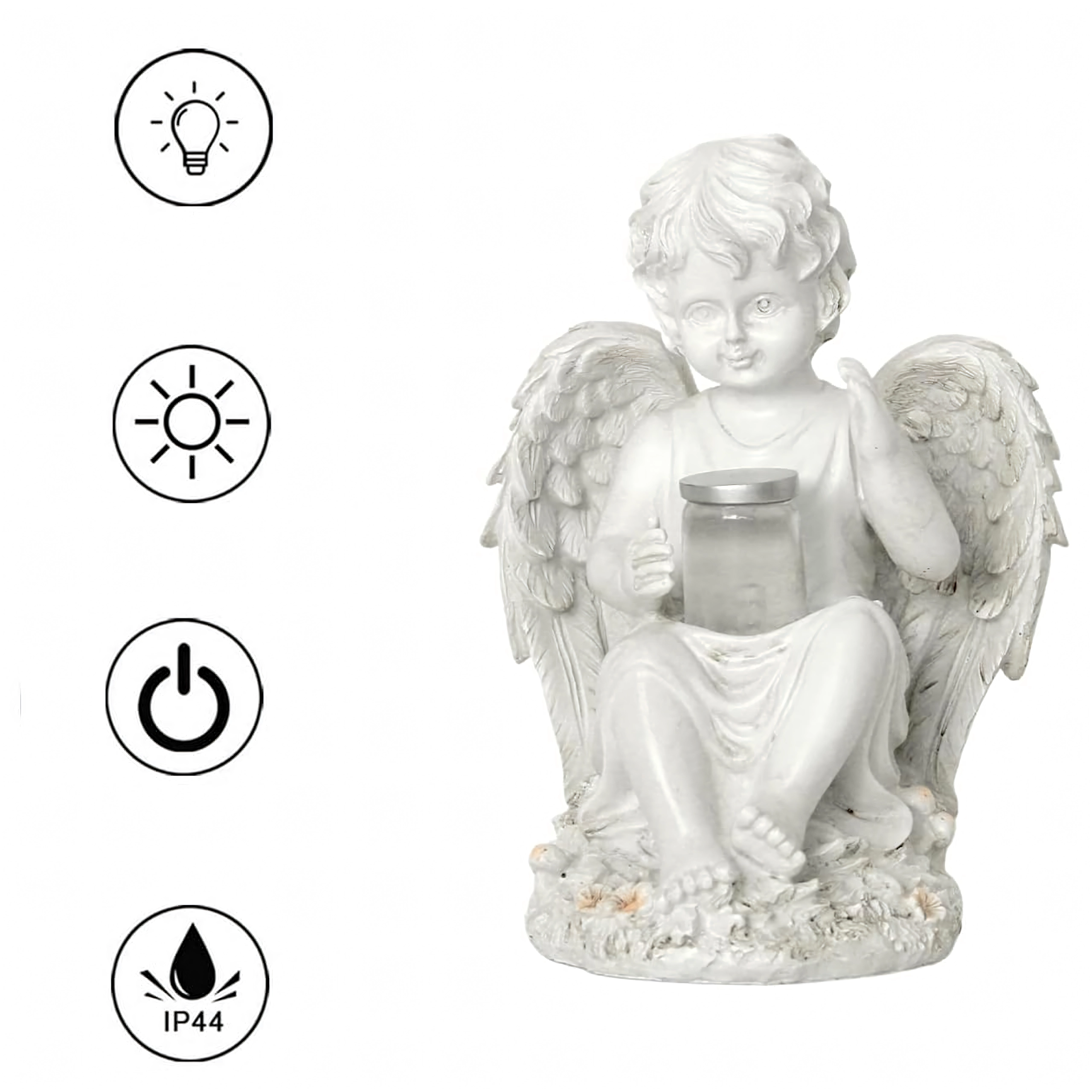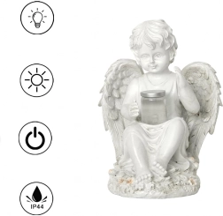 Créez une atmosphère paisible et chaleureuse avec cette figurine d’ange dotée d’un éclairage LED solaire. Des ailes détaillées, des lignes délicates et une lumière chaude et discrète en font un accessoire élégant pour le jardin, la terrasse, le balcon ou un lieu de recueillement.