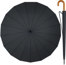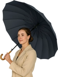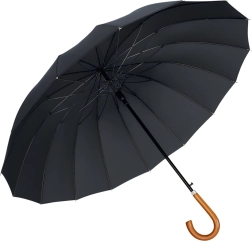 Parapluie long élégant et exceptionnellement robuste doté de 24 baleines renforcées, alliant style classique, grande stabilité au vent et confort d’un ouverture automatique. La grande canopée de 115 cm protège efficacement une personne ou un couple, le tissu imperméable et à séchage rapide facilite l’entretien et la poignée courbée en bois offre une allure intemporelle. Livré avec un étui à bandoulière pour un port confortable.