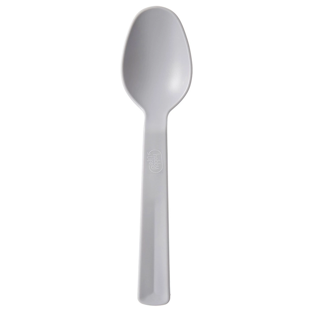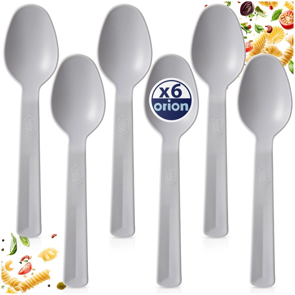 Des cuillères en plastique de qualité, de couleur grise, résistent à un usage quotidien, aux fissures et aux rayures, tout en restant très légères en main.