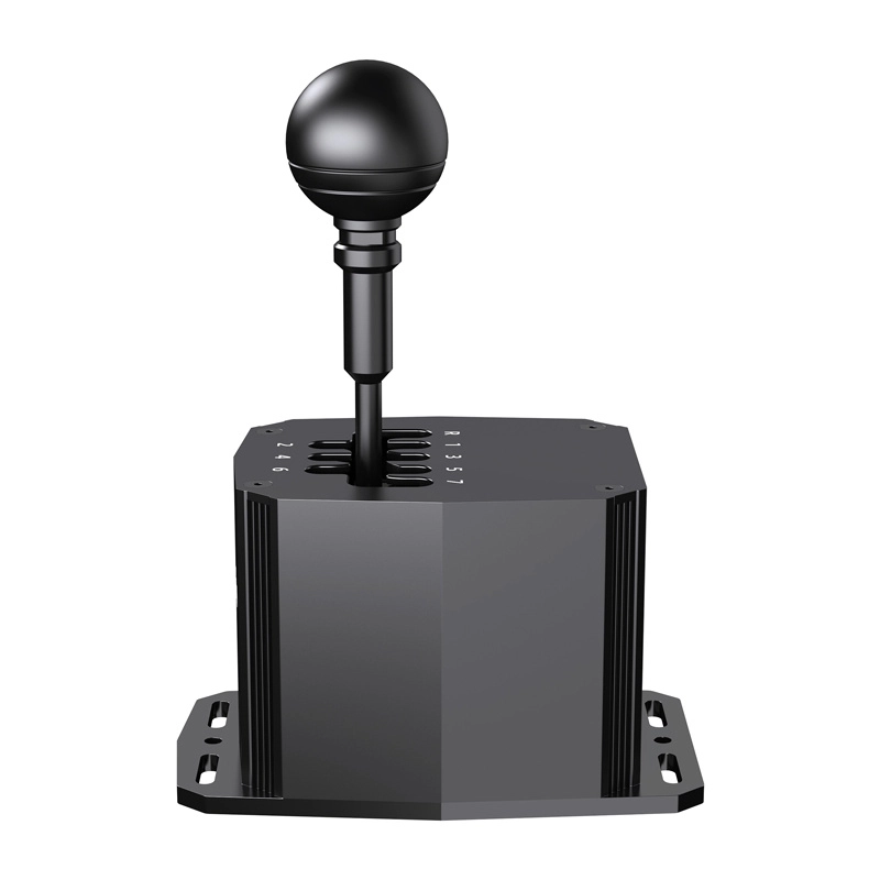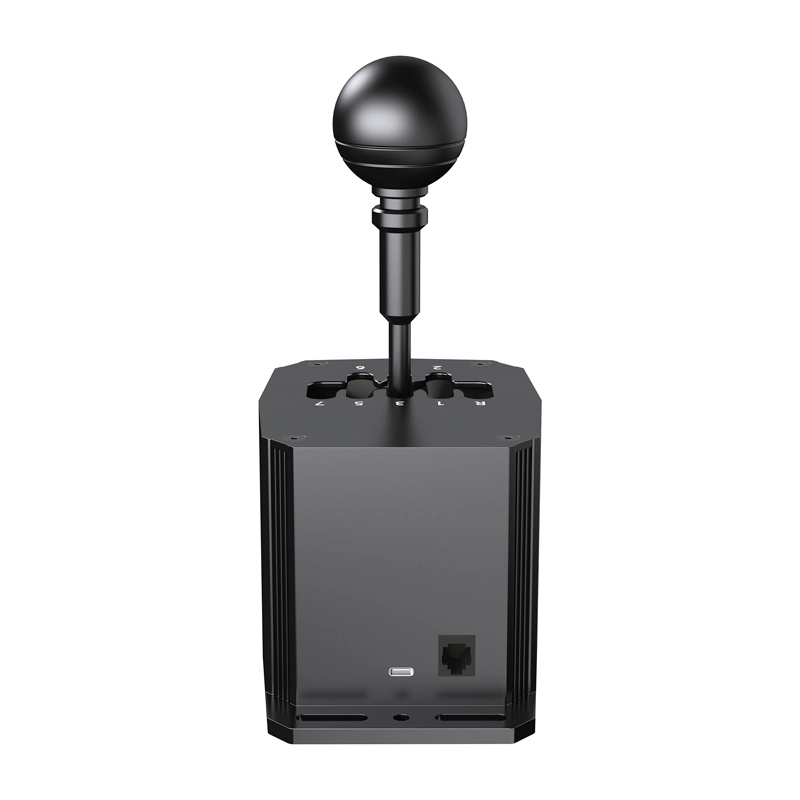 La construction robuste majoritairement métallique, avec un poids d’environ 1,55 kg, assure un ancrage solide même lors de sessions dynamiques. À l’aide des accessoires de montage fournis, la boîte se fixe facilement sur un support de simracing. La connexion USB‑C permet une mise en service rapide et sans complications.
