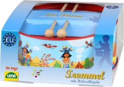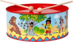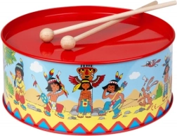 Tambour pour enfants avec motif indien, diamètre 20 cm, qui ravira les petits musiciens. Il est fabriqué en métal, complété par du textile et deux baguettes en bois. Une corde pour le porter autour du cou est également incluse. Il favorise le développement de la coordination, du rythme et de l’amour de la musique.