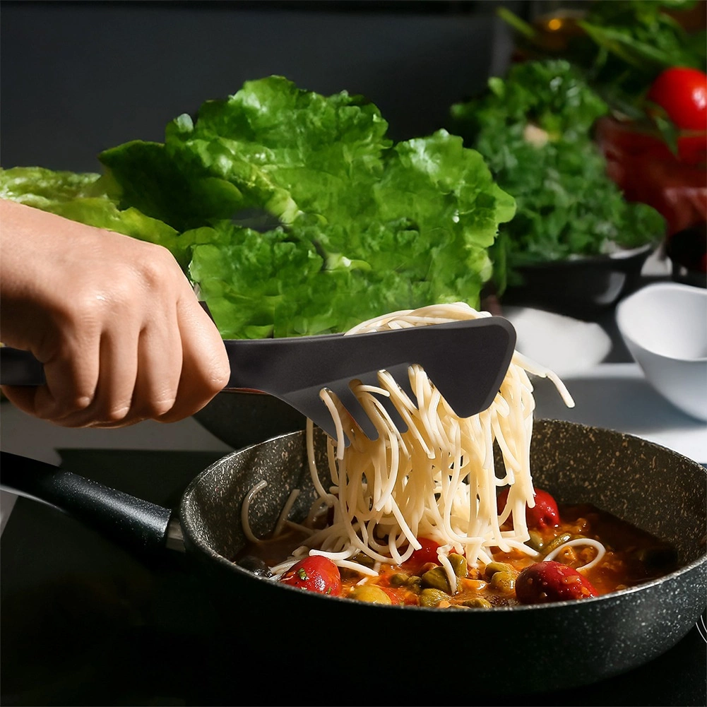 Un seul outil pour prélever, retourner et servir. Idéal pour salades, pâtes, légumes et viandes – à la maison comme au gril.