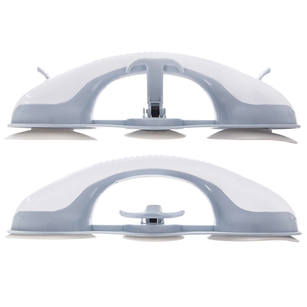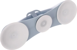 Le corps robuste en plastique de qualité, finition blanc–gris, assure une prise stable et confortable. Trois ventouses puissantes tiennent fermement, tandis que le crochet intégré offre un emplacement pour l’éponge ou le gant et garde la salle de bain ordonnée.