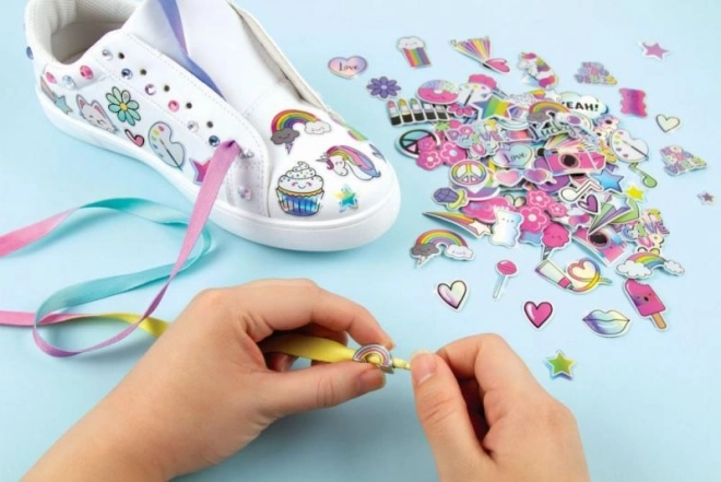 - Autocollants décoratifs, breloques à perles, lacets de chaussures