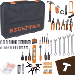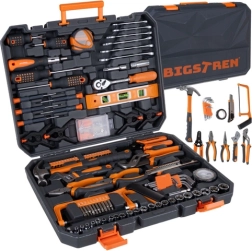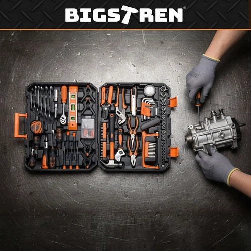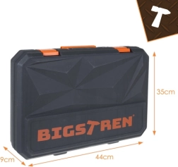 Le pratique set d’outillage BIGSTREN dans une mallette robuste réunit tout ce dont vous avez le plus souvent besoin à la maison comme à l’atelier. Il contient 168 pièces – clés, douilles, embouts, tournevis, pinces et accessoires – et grâce à un organiseur clair, chaque élément a sa place. Inclus également : cliquet 3/8” à 72 dents pour un serrage fluide, embouts magnétiques pour un travail sûr, et pièces résistantes en acier chrome‑vanadium (CrV).