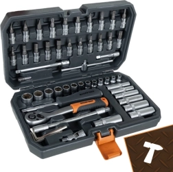 - Coffret complet 56 pcs – douilles, embouts, rallonges, poignée en T, clés hexagonales, adaptateur et plus encore.