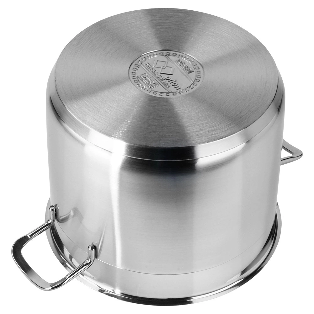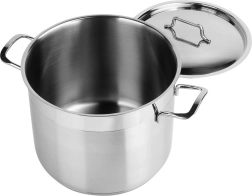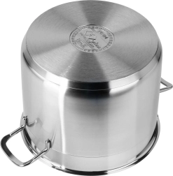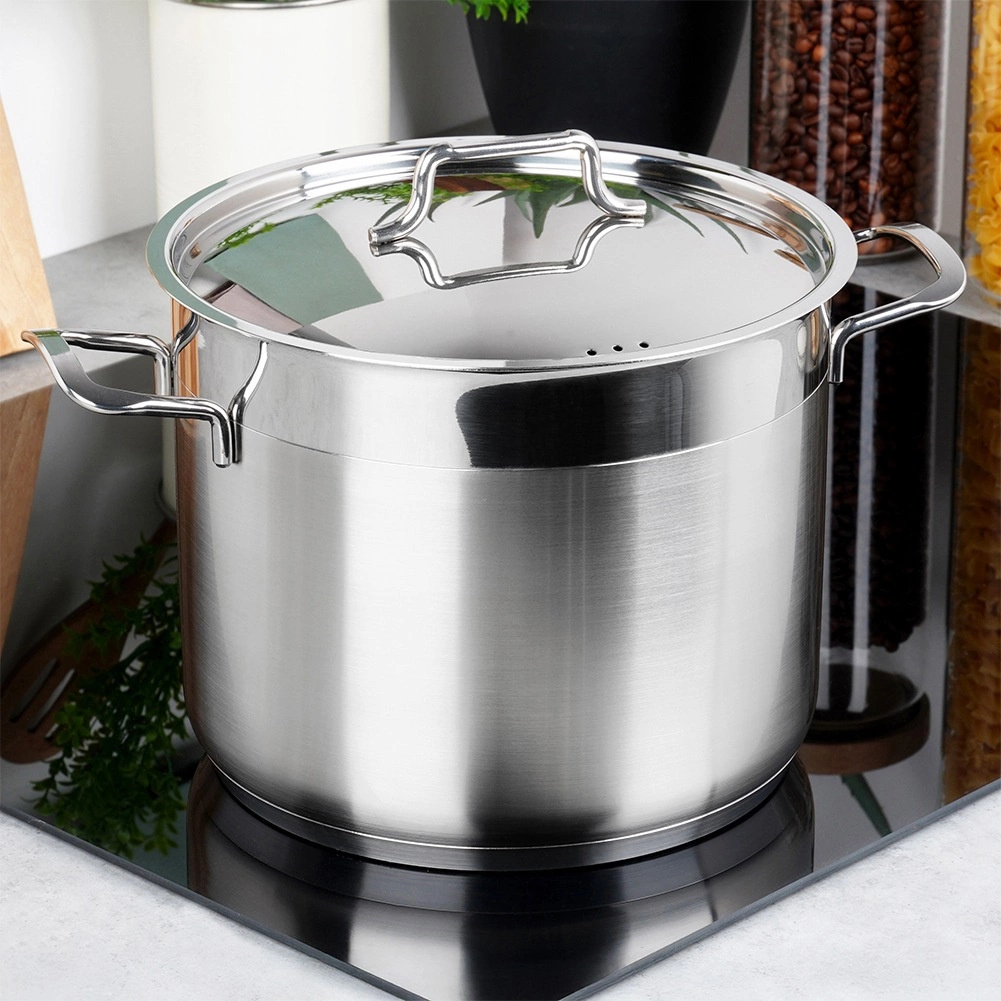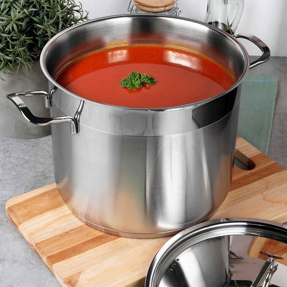 Casserole premium en acier inoxydable avec couvercle, capacité 6,5 l, idéale pour la cuisson et le mijotage au quotidien. Grâce au fond thermique multicouche, elle accumule et répartit la chaleur de manière uniforme, convient à tous les types de plaques, y compris l’induction, et permet une cuisson économe en énergie avec un minimum de matières grasses. Inox 18/10 de qualité, parois épaisses, poignées confortables et entretien facile y compris au lave-vaisselle en font un allié fiable pour toute cuisine.