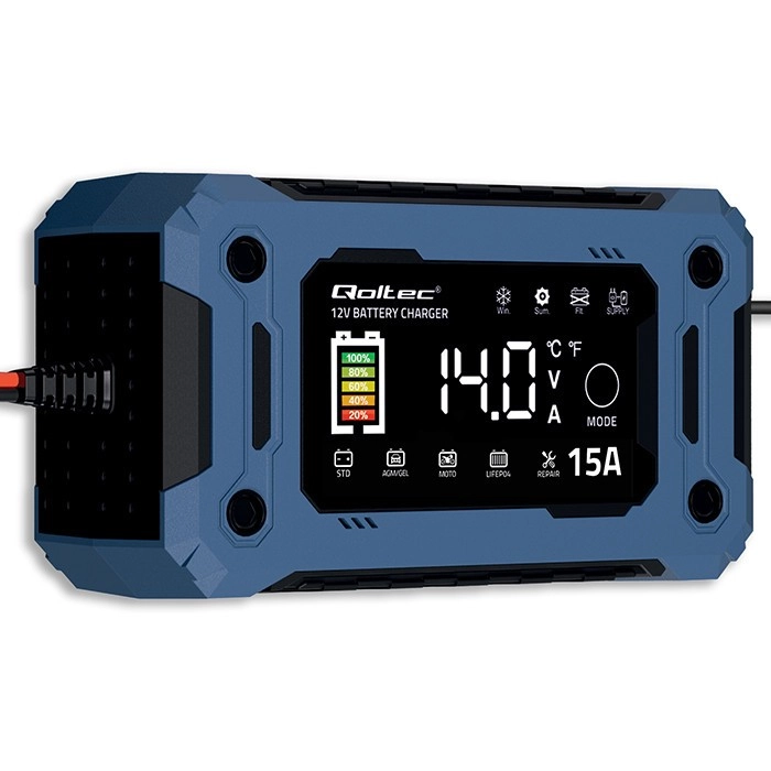 Prolongez la durée de vie de votre batterie avec ce chargeur intelligent piloté par microprocesseur. Il reconnaît automatiquement le type d’accumulateur, adapte la courbe de charge et passe en mode entretien une fois la charge complète, évitant ainsi tout surchargement. Le grand écran LCD affiche la tension, le courant, l’état de charge et le mode sélectionné, tandis que le bouton tactile MODE simplifie le contrôle.
