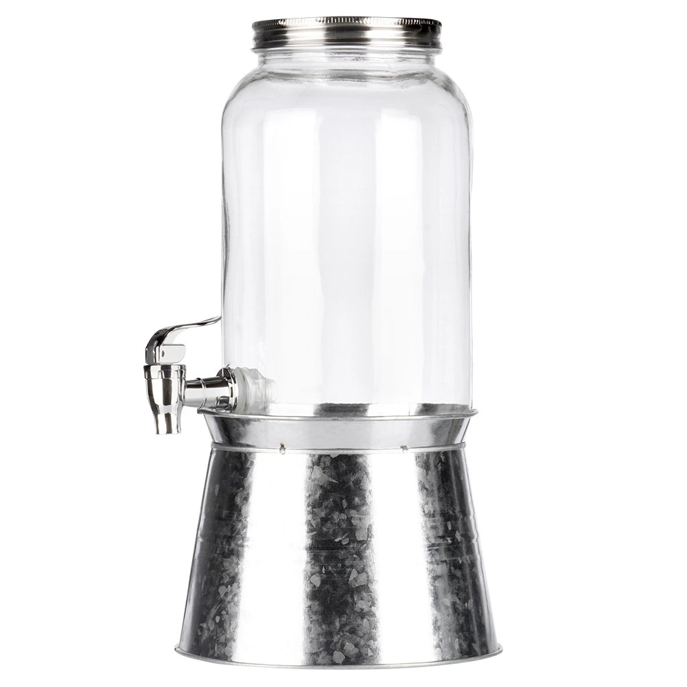 Le support en métal galvanisé élève le récipient à la hauteur idéale, vous permettant de glisser facilement le verre sous le robinet pour un service propre et sans gouttes.