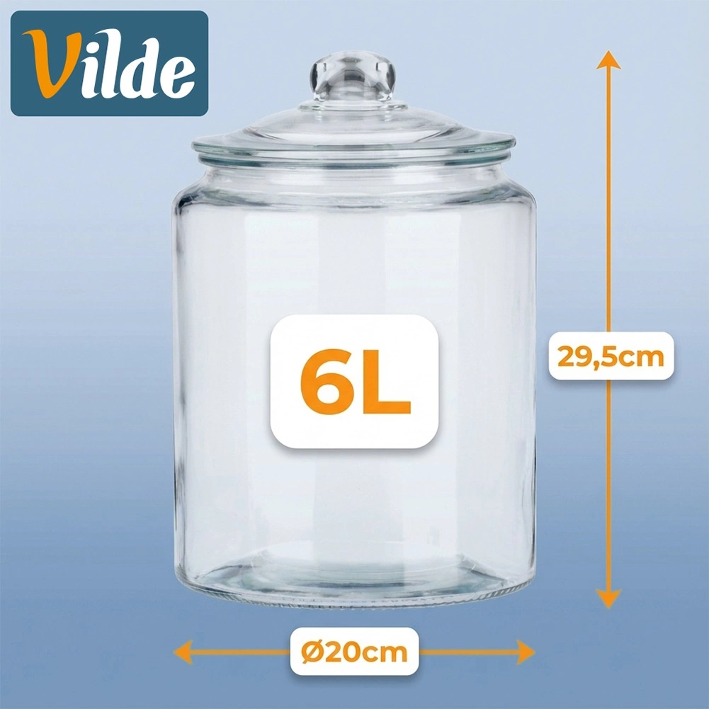 Ce bocal en verre grand volume allie élégance et fonctionnalité. Grâce au verre transparent et épais, vous gardez toujours un parfait contrôle sur le contenu, tandis que le couvercle en verre avec joint protège les aliments de l’humidité et de la perte de parfum. Les dimensions 20 × 20 × 29,5 cm offrent suffisamment d’espace pour les ingrédients et les gourmandises maison.