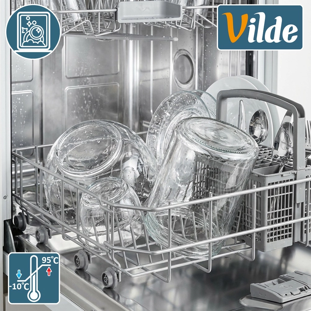 Parfait pour la cuisine et le garde-manger : pâtes, riz, biscuits, café, thé, herbes, muesli ou conserves maison. Grâce à sa résistance thermique de -10 °C à 95 °C, il est également idéal pour la fermentation (cornichons, choucroute, légumes). La surface lisse garantit un entretien facile et un lavage au lave‑vaisselle.