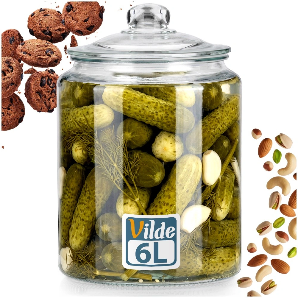 Convient aux aliments secs, aux conserves et à la fermentation maison de cornichons ou de légumes. Le large goulot facilite le remplissage et le service.