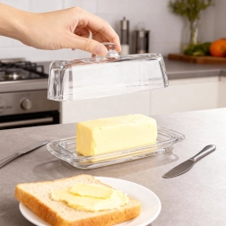 Le couvercle en forme de petite cloche avec un bouton pratique protège le beurre des odeurs et des impuretés tout en se soulevant aisément.
