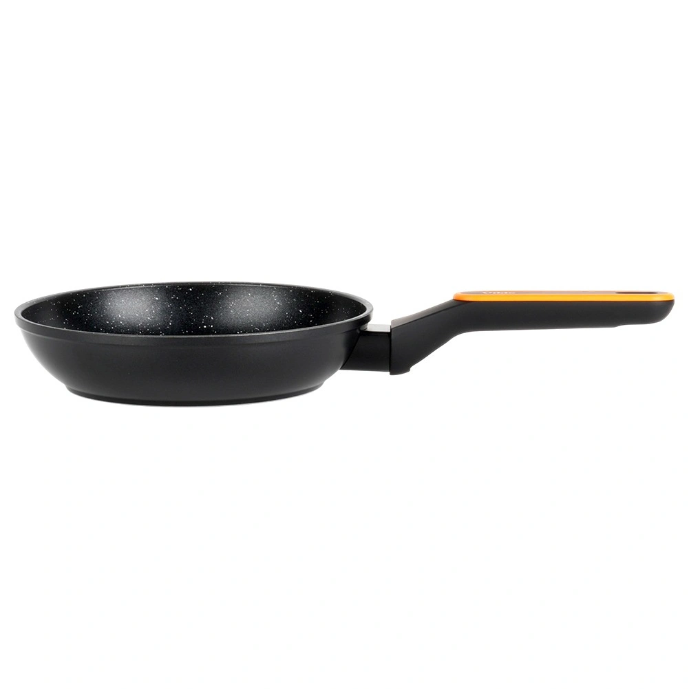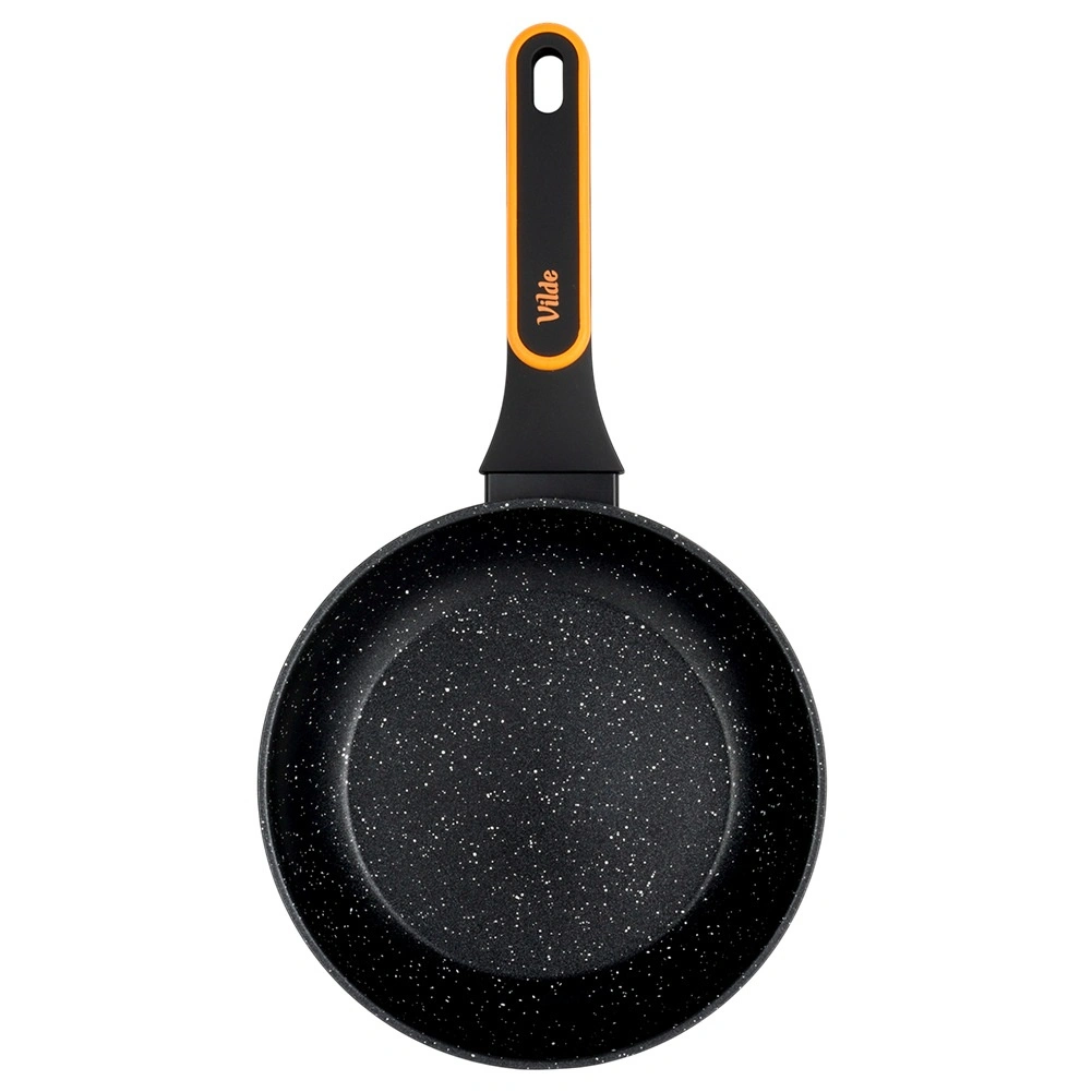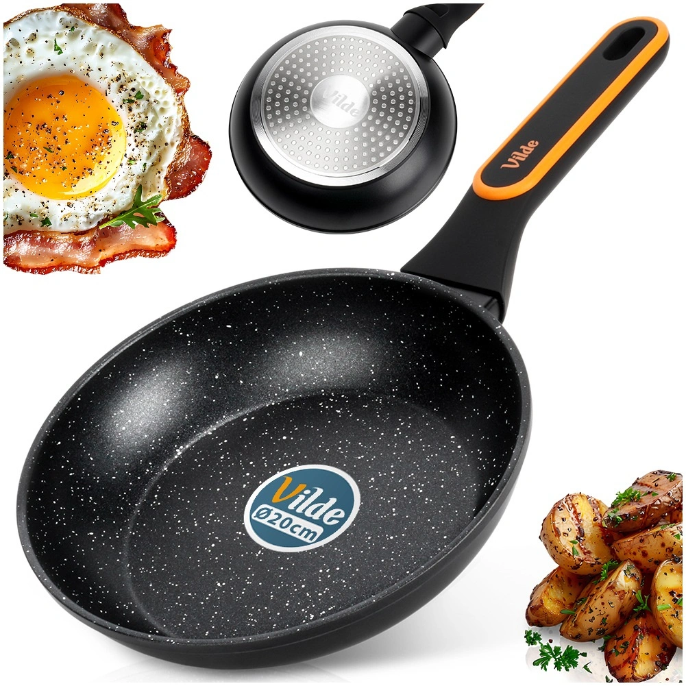 Poêle en granit compacte de 20 cm de diamètre pour la cuisine quotidienne. Grâce à son revêtement antiadhésif, à la distribution rapide et uniforme de la chaleur et à sa compatibilité avec tous les types de plaques, y compris l’induction, vous préparez des plats avec un minimum de matière grasse, facilement et sans accrocher. La poignée ergonomique ne surchauffe pas et assure une prise en main sûre; la poêle peut être lavée au lave-vaisselle.