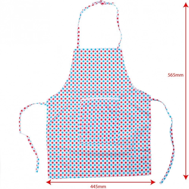 Offrez aux petits chefs tout ce dont ils ont besoin pour leurs premières pâtisseries et pour des jeux de cuisine amusants. Le tablier à pois en tissu léger protège les vêtements, la toque de chef s’ajuste facilement grâce au velcro et le rouleau en bois avec des emporte-pièces en métal stimule la créativité et le plaisir de créer.