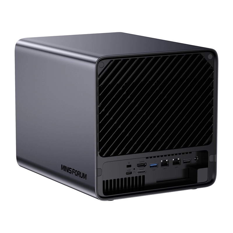 Une connectivité de pointe inclut 10 GbE + 5 GbE, deux ports USB4, HDMI 2.1, et des possibilités d’extension via PCIe x16 et OCuLink (eGPU). MinisCloud OS offre un accès multiplateforme (Windows/macOS/iOS/Android), une photothèque intelligente avec IA, la compression LZ4 et une connexion distante chiffrée sans configuration complexe.