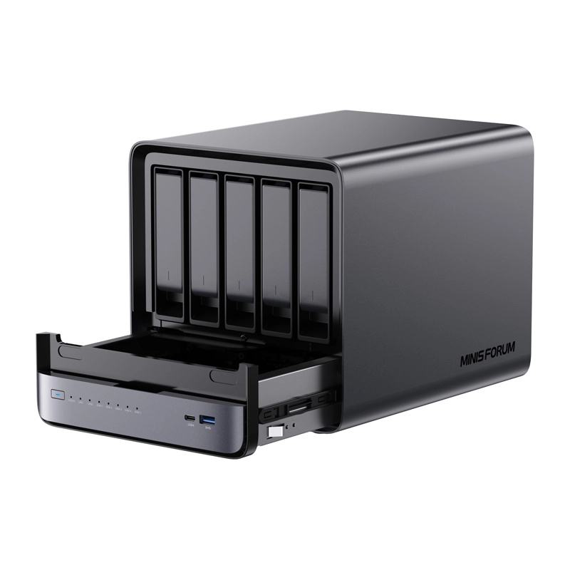 - 5 × HDD 3,5" / 2,5" (jusqu’à 22 To par disque, SATA 3.0)