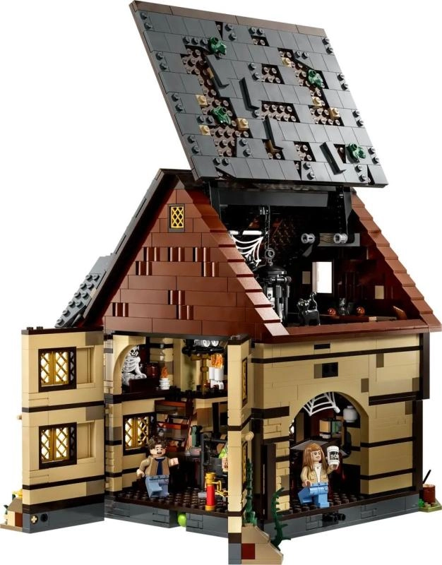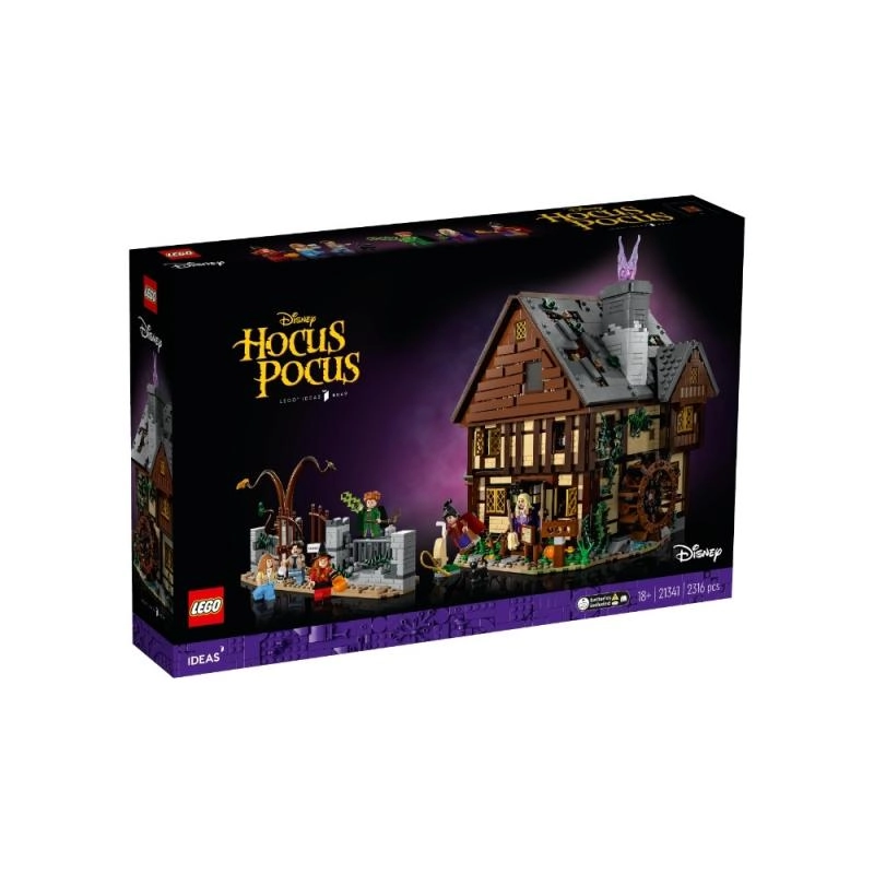 Savourez la nostalgie du film Disney Hocus Pocus avec le set de collection LEGO Ideas 21341la cabane des sœurs Sanderson avec structure ouvrante, intérieur détaillé, brique lumineuse dans le chaudron et un riche ensemble de minifigurines et d’accessoires pour le jeu et l’exposition.