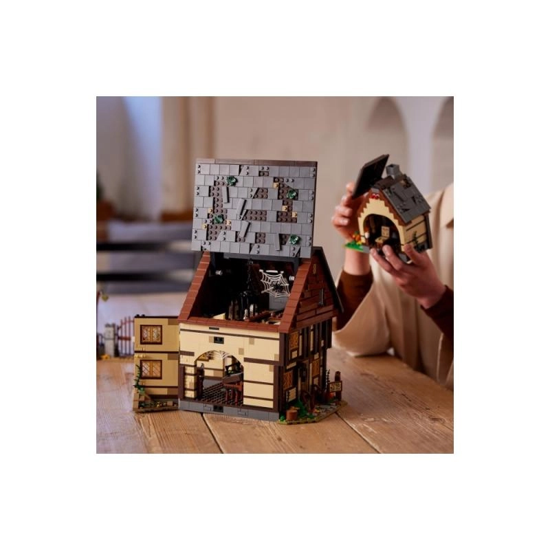 Découvrez l’emblématique cabane du film Disney Hocus Pocus sous la forme d’un set richement détaillé pour fans et collectionneurs. Le modèle s’ouvre de plusieurs manières pour un accès facile à l’intérieur : vous verrez la boutique du musée, la chambre des sorcières remplie de chauves-souris et un chaudron avec brique lumineuse LEGO qui illumine le feu par le dessous. Sont inclus le Livre des sorts, une pièce latérale pour emprisonner Dani et une roue à eau fonctionnelle avec cheminée d’où “monte” une fumée rose lorsque l’on tourne la roue.