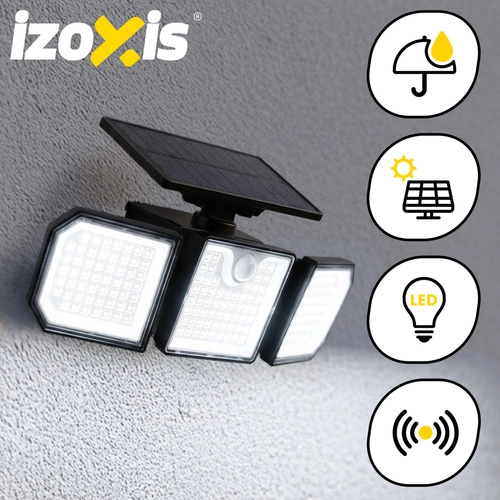 Puissante lampe solaire IZOXIS avec 167 LED et une luminosité de 500 lm pour éclairer fiablement le jardin, l’entrée, la façade ou l’allée. Grâce au panneau solaire 5,5 V / 1,5 W et à la batterie 1800 mAh, elle se recharge pendant la journée et s’allume automatiquement à la tombée de la nuit. Capteur de mouvement, capteur crépusculaire et 3 modes assurent un éclairage uniquement lorsque c’est nécessaire. L’indice IP65 et les projecteurs latéraux garantissent une large couverture et une longue durée de vie, sans câbles ni coûts d’électricité.
