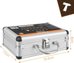La mallette rigide protège l’ensemble lors du transport et du stockage, garde les outils bien organisés et prêts à l’emploi.