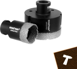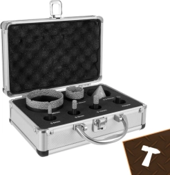 Le kit BIGSTREN est idéal pour les plombiers, carreleurs et bricoleurs exigeants. Les diamants brasés sous vide et la couche de travail diamant de 15 mm offrent des arêtes propres sans fissures, une vitesse élevée et une grande stabilité de coupe. Pour les petits diamètres, un cire de refroidissement est intégrée, et pour les plus grands, des ouvertures de ventilation limitent la surchauffe et prolongent la durée de vie de l’outil.
