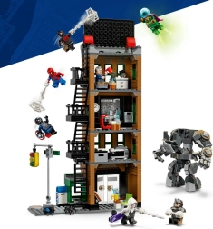 Le bâtiment Daily Bugle à quatre étages ravira les fans de MARVEL et de LEGO. Une façade réaliste dans des tons beige et gris, un escalier de secours latéral et un grand panneau publicitaire sur le toit composent le décor parfait pour les affrontements entre héros et méchants. Au rez-de-chaussée, découvrez l’entrée de la rédaction et un kiosque à journaux stylé avec feu de signalisation et boîte aux lettres pour parfaire l’atmosphère urbaine.