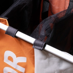Grâce à sa structure pliante, le panier se transporte et se range facilement lorsque vous n’en avez pas besoin. La fixation à velcro permet de retirer rapidement chaque sac et de les utiliser même sans cadre.