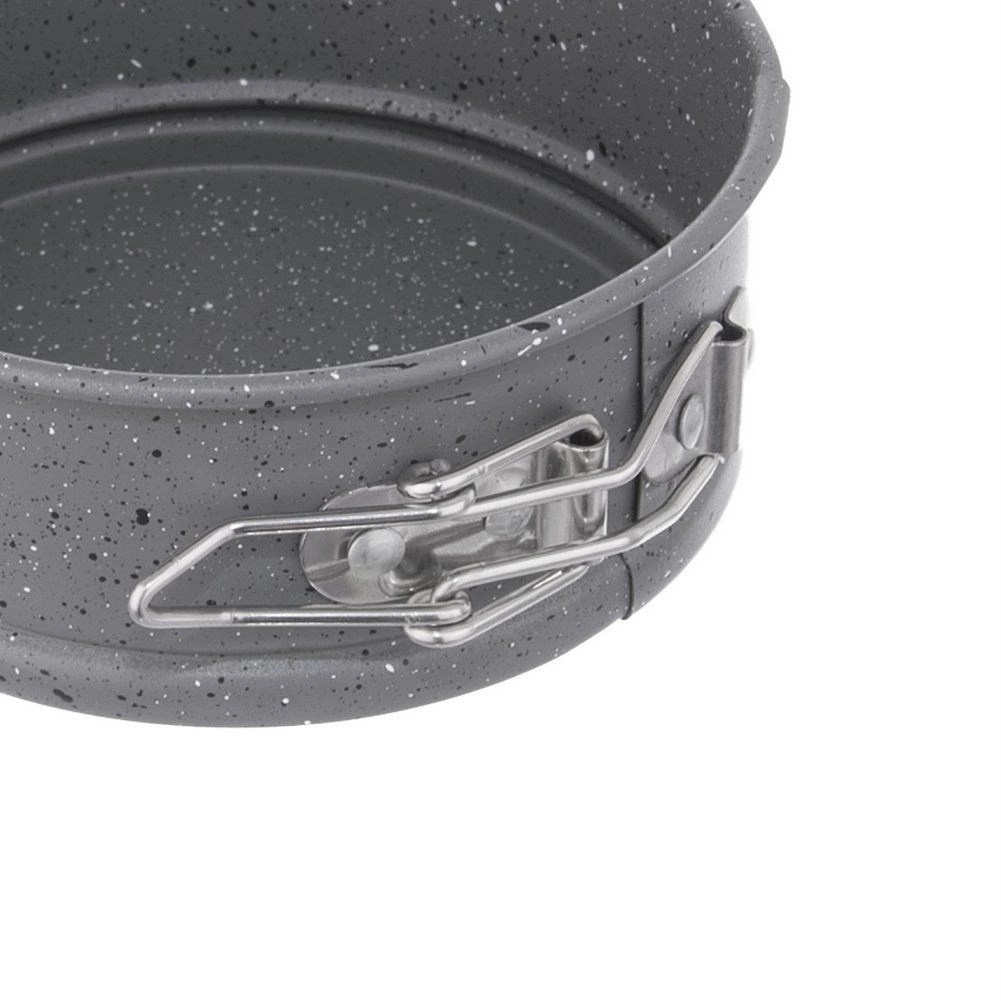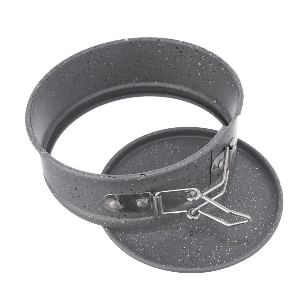 Moule à gâteau compact de 12 cm de diamètre avec revêtement antiadhésif effet granite pour une cuisson facile des mini gâteaux et desserts sans cuisson. Grâce au bords extensibles et au fond amovible, vous démoulez le biscuit en un geste. Résistant jusqu’à +230 °C, antiadhésif même avec un minimum de matière grasse et compatible lave-vaisselle.