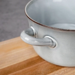 La conception en céramique robuste conserve bien la chaleur, l’ouverture large facilite le service et les deux anses confortables assurent une manipulation sûre même avec un contenu chaud. Le bol est facile à entretenir – compatible lave-vaisselle et micro-ondes.
