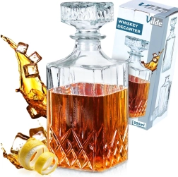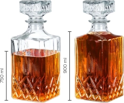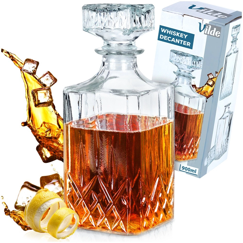 Élégante carafe en verre avec bouchon en liège, de forme carrée moderne, idéale pour servir le whisky et d’autres boissons. Elle offre un volume maximal de 900 ml et un volume utile confortable de 750 ml pour une manipulation aisée. Fabriquée en verre transparent résistant, compatible lave-vaisselle, elle préserve parfaitement les arômes et les saveurs grâce à sa fermeture hermétique. Son design stylé apporte à votre table une touche décorative et constitue également un excellent cadeau pour les amateurs de spiritueux de qualité.